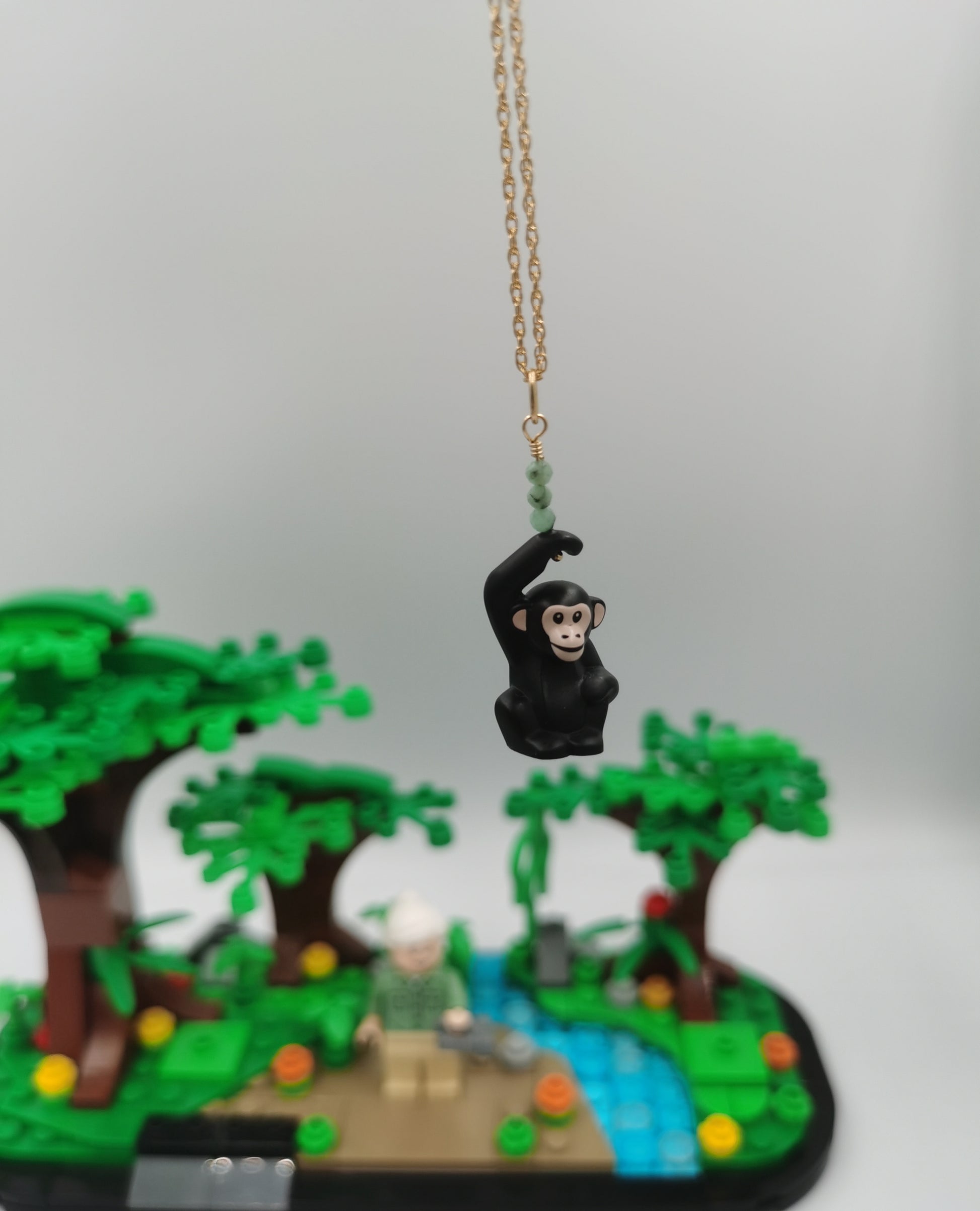 Lego Chimpanzee Infant Flint Necklace - In remembrance of Jane Goodall